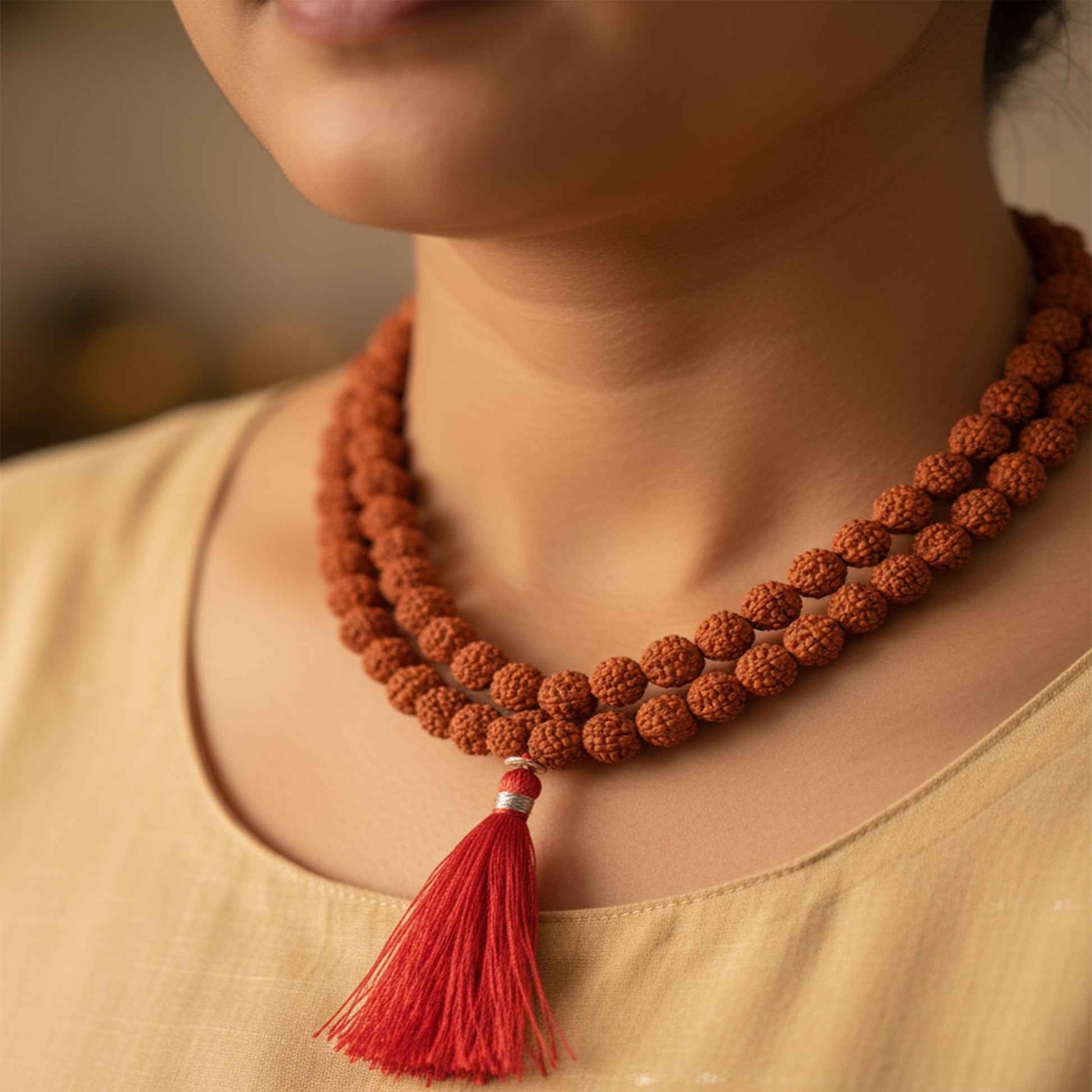 Elevate your spiritual journey with this 100% Natural 5 Face Rudraksha Mala (8mm), complete with a Lab Testing Certificate of Authenticity. Each mala is crafted with 108+1 Rudraksha beads, making it a powerful tool for meditation, prayer, and protection. - Certified Authenticity You Can Trust Unlike fake or synthetic beads, this mala is lab-tested for originality. A certificate of authenticity is provided with every purchase, giving you full confidence in the spiritual power of your Rudraksha. - Spiritual & Health Benefits Represents Lord Shiva, bringing calmness and spiritual growth. Enhances focus, concentration, and positive energy during meditation. Believed to regulate blood pressure and reduce stress. Protects from negative influences and promotes overall well-being. ?? Premium Quality Design 108+1 beads in traditional arrangement. Each bead is approx. 8mm in size, carefully polished yet natural. Strong thread for durability and long-term use. Whether you are a devotee, yoga practitioner, or meditation enthusiast, this lab-certified Rudraksha Mala is the perfect blend of authenticity, spirituality, and trust.