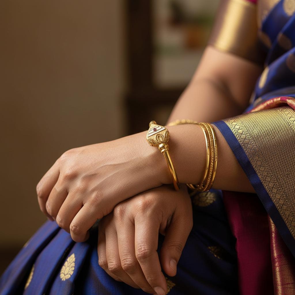 Crafted from a sacred blend of five metals—Gold, Silver, Copper, Iron, and Lead—this unisex Panchaloha Kada features the divine Vel and Mayil (Peacock) symbols of Lord Murugan. Known for its spiritual, astrological, and healing properties, the kada evolves in color over time, gaining a natural golden shine with continued wear.