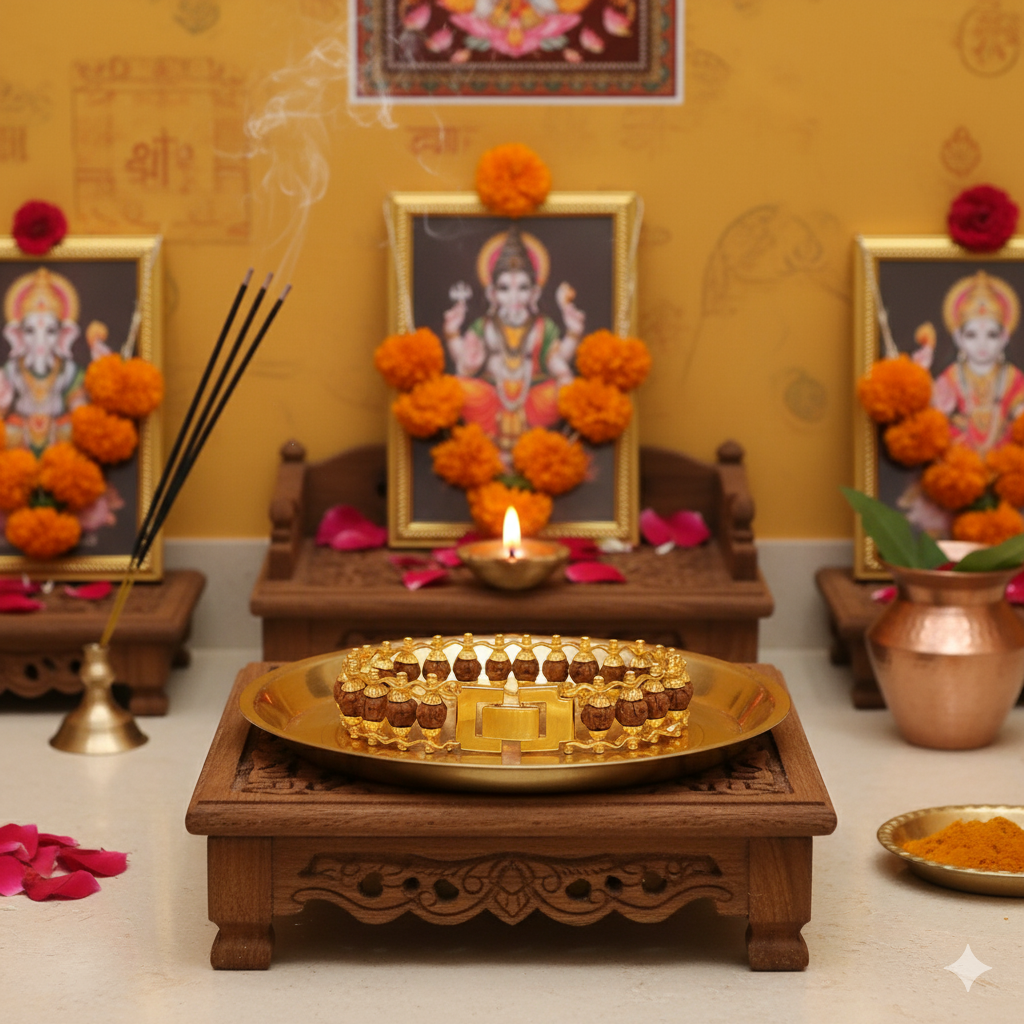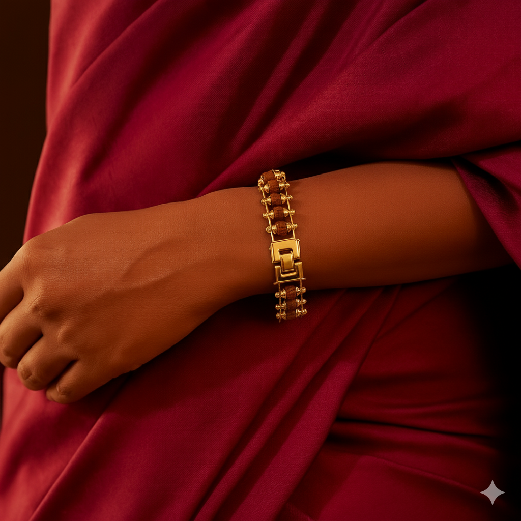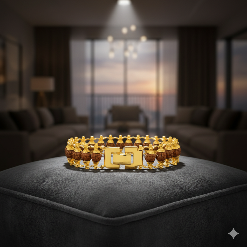 100% Natural 5 Mukhi Rudraksha Bracelet with Gold-Plated Metal Modern Design | Spiritual Energy, Protection & Meditation